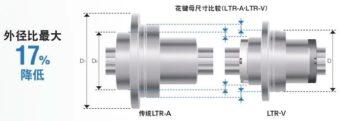 LTR-V型在滾珠花鍵部采用LT-X型,比傳統型號LTR-A型更小。