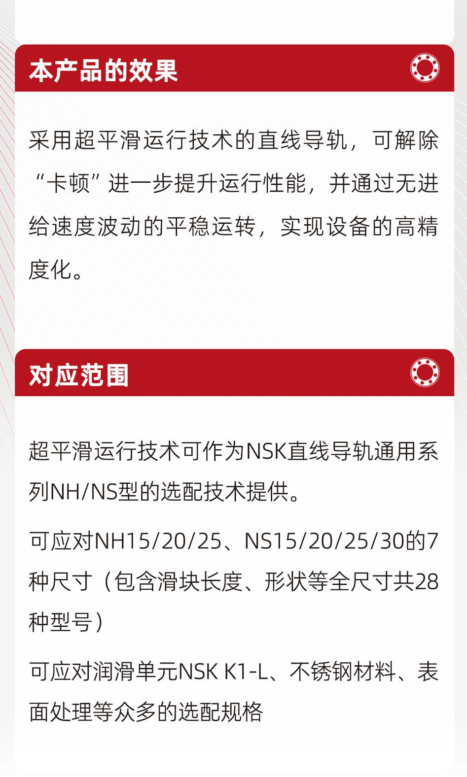 本次修訂將2023年3月發布的“NSK全球首創可實現精準預測壽命的Micro-UT檢測方法(點擊文末閱讀原文)”*3 應用于主要類型的滾動軸承(適用對象:深溝球軸承、角接觸球軸承、調心球軸承、圓柱滾子軸承和圓錐滾子軸承)。